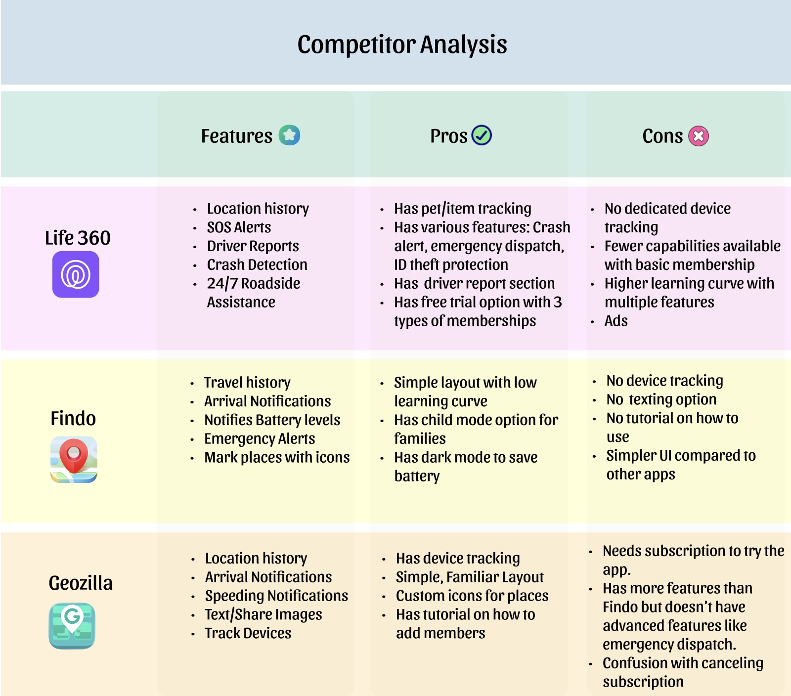 • Compared leading location-tracking apps to understand their feature offerings.
