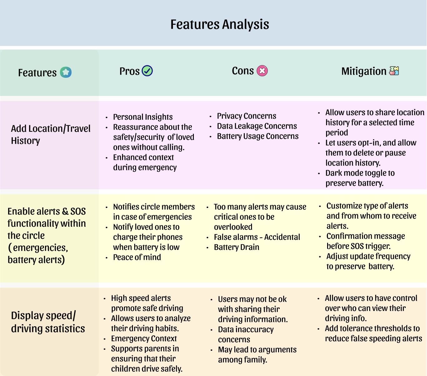 • Analyzed benefits and risks for each feature.