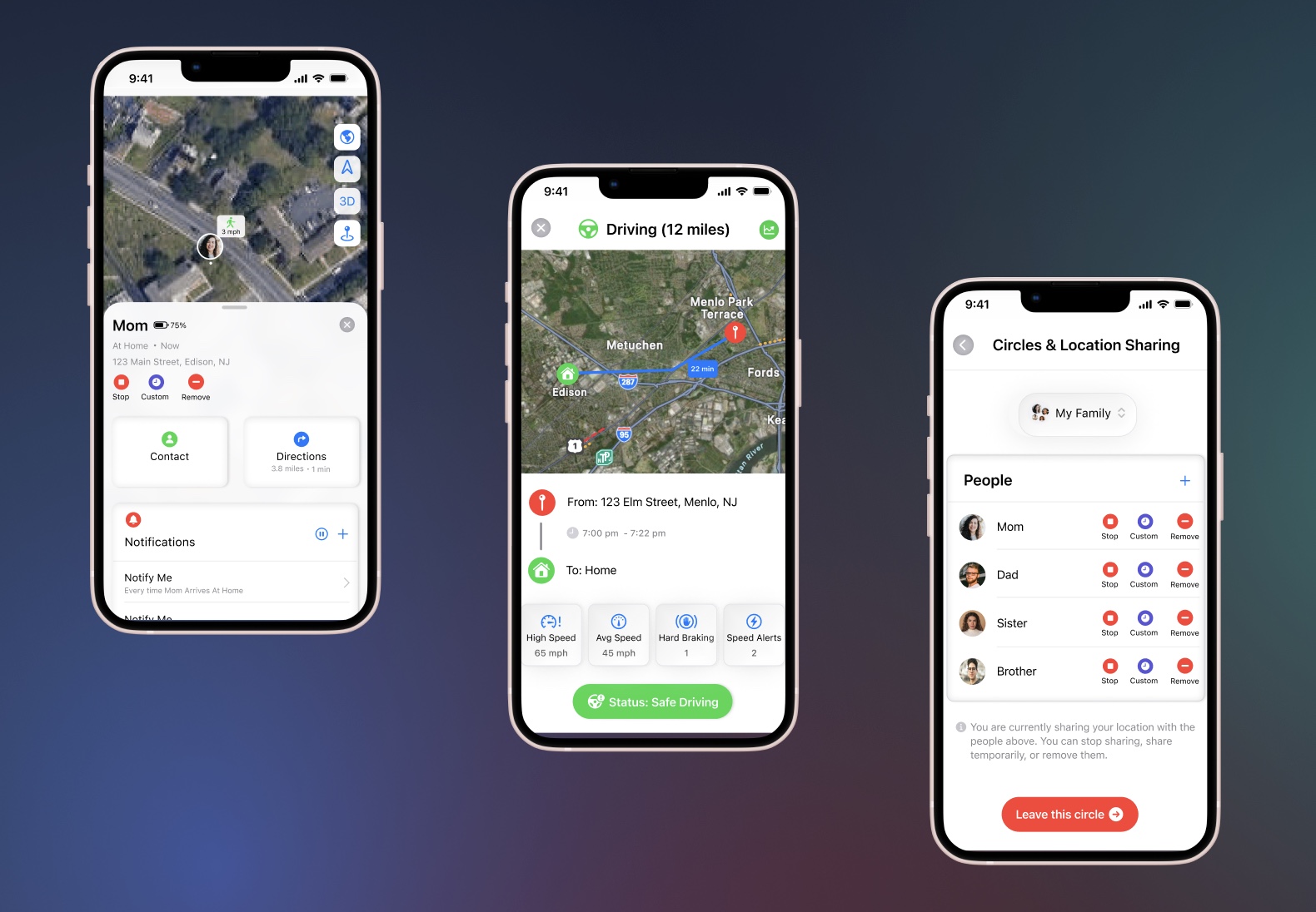 • Member Screens (location history, driving stats, notifications, battery)