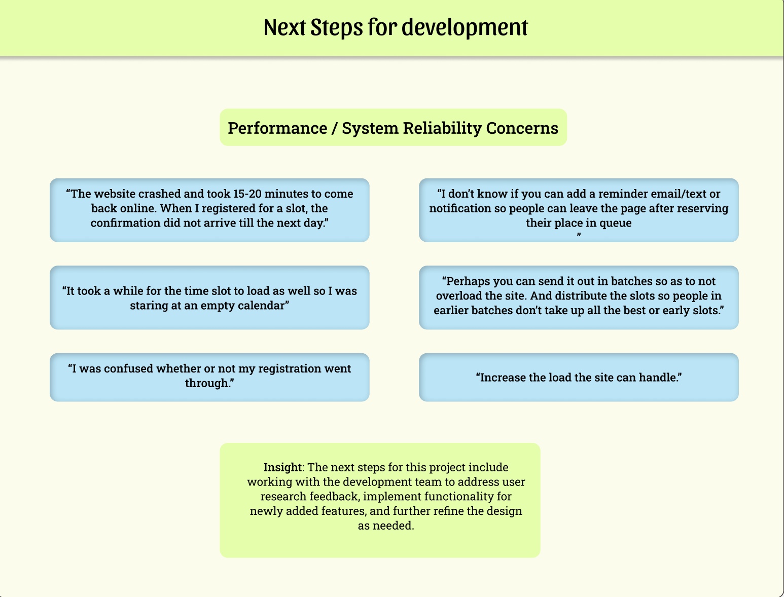 I noticed that many people were confused about which time slots were actually available and felt frustrated when the system was slow or unresponsive during busy times. Because these concerns came up repeatedly, it was clear that the problem wasn’t just about how the site looked — it was affecting how easy it was to use and whether users trusted the process.