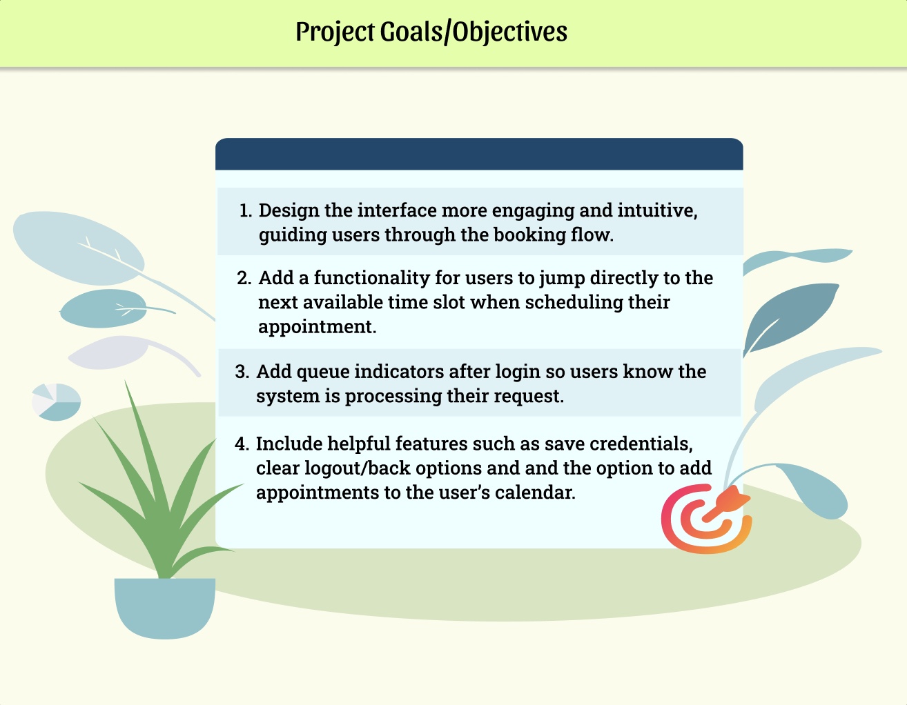 Changes made: Designed a table to display both upcoming and past appointments, developed a color-coded calendar to clearly highlight available dates and times—addressing a key pain point—and refined the design using brand colors.